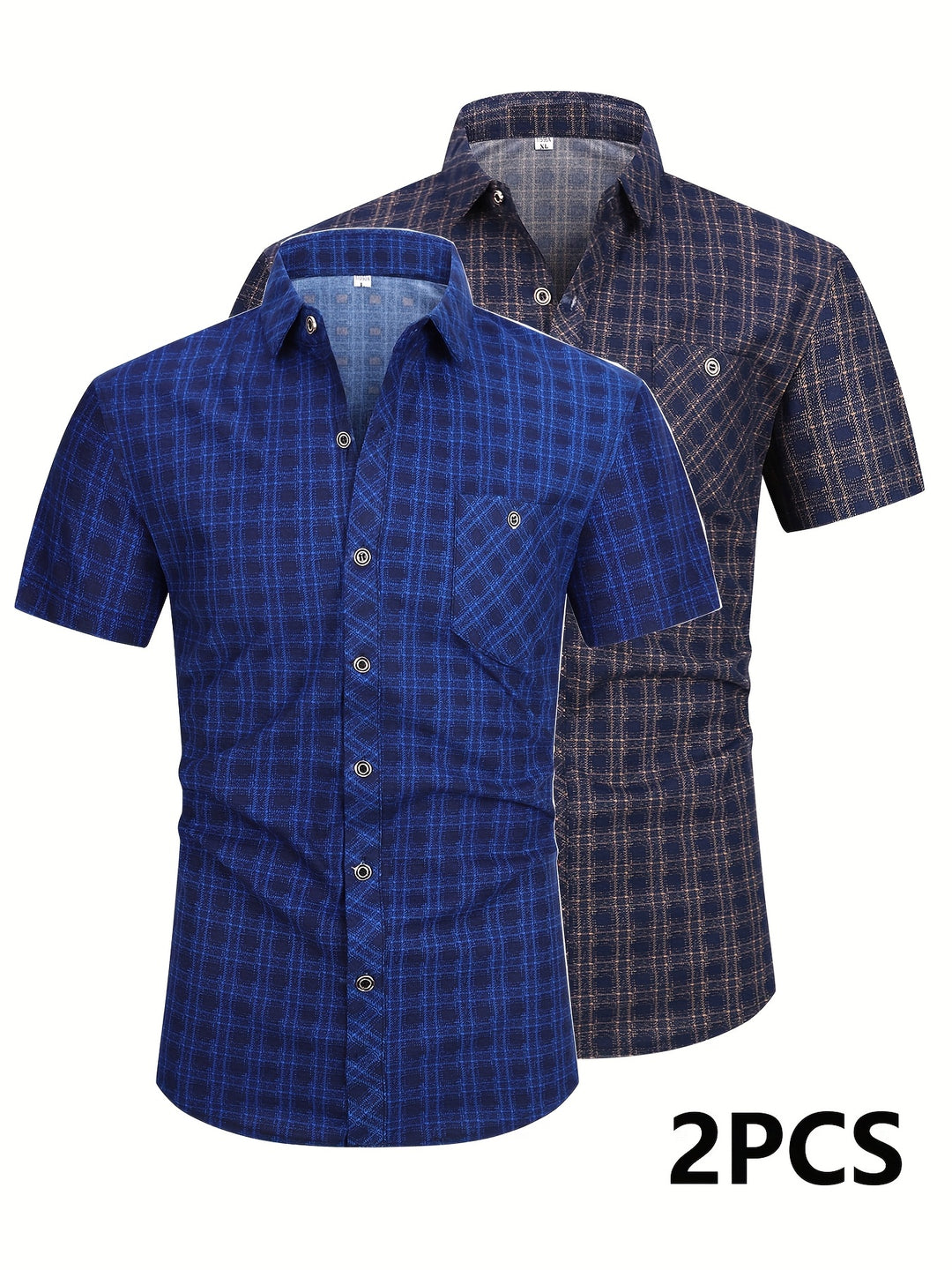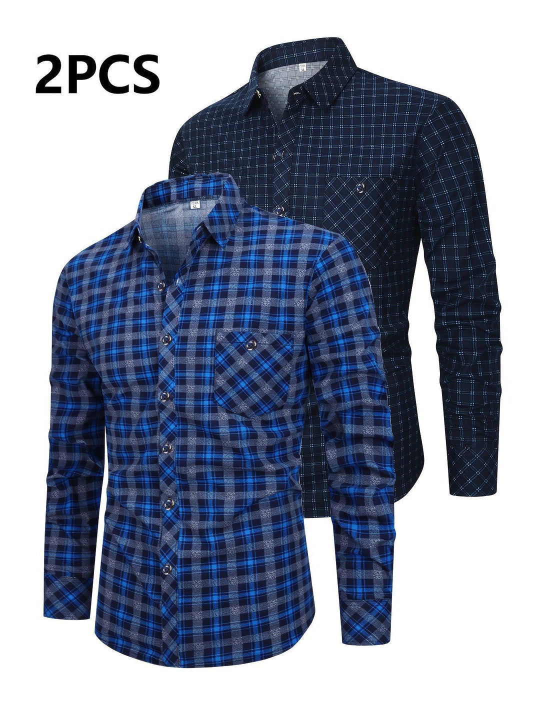 2 pcs Men's Long Sleeve Button-Up Shirts