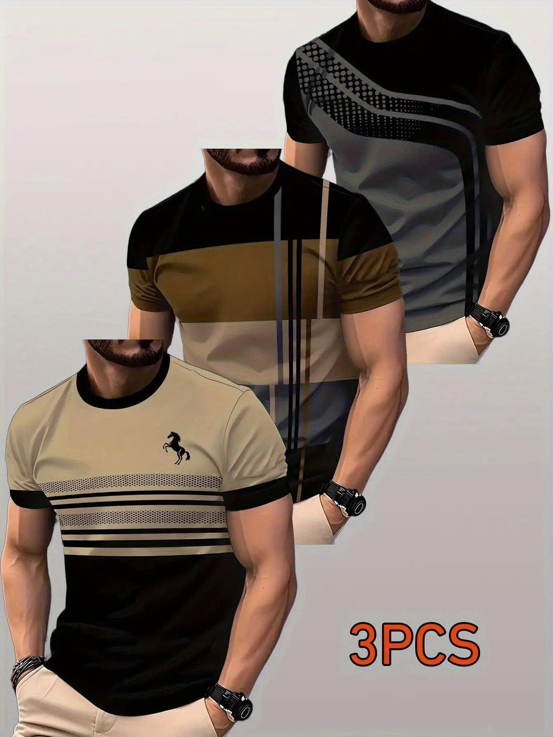 3 pcs Men's Joggers with Elastic Waistband & Drawstring