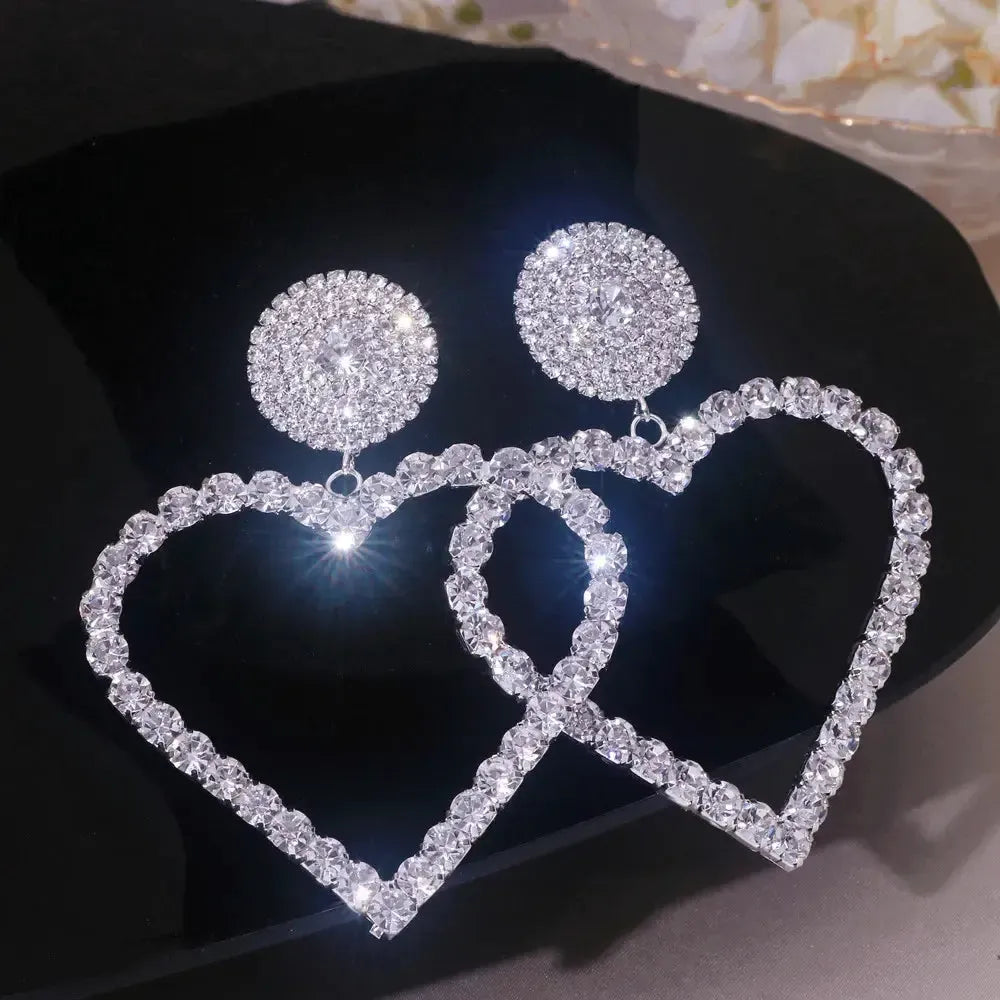 Luxury Shiny Hollow Oversized Heart Dangle Earrings for Women