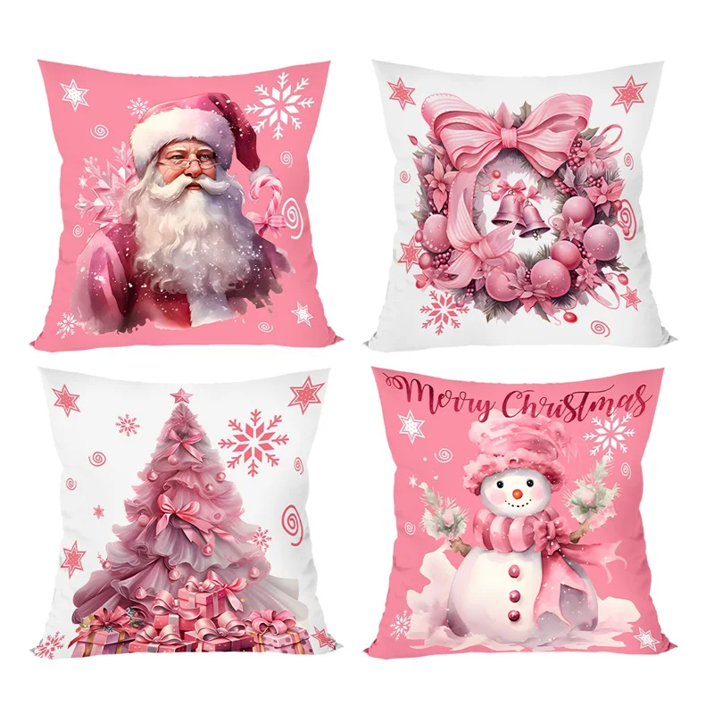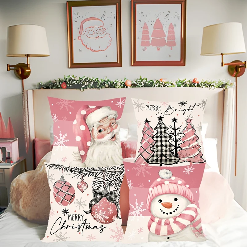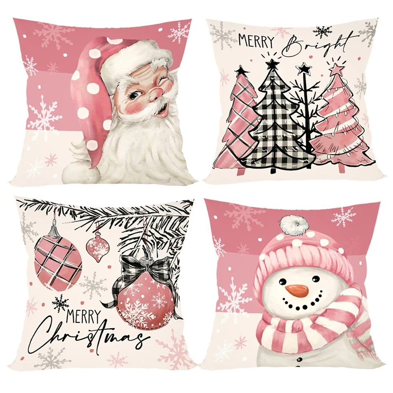 4 pcs. Pink Christmas Snowman Pillowcase Navidad Natal Noel Tree Cushion Cover Christmas Decorations For Home