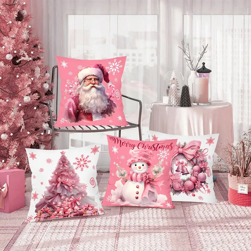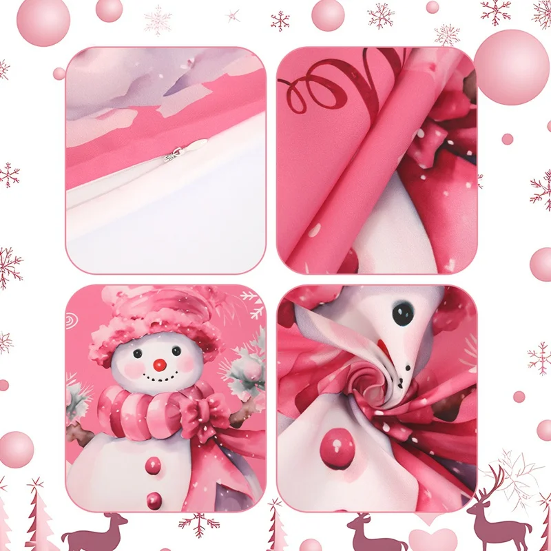 Transform your home with this elegant four-piece pink Christmas snowman pillowcase collection, designed to bring festive charm to any space. Each cushion cover features charming holiday motifs including snowmen, Christmas trees, and traditional Navidad, Natal, and Noel designs. Crafted from quality materials sourced from Mainland China, these non-electronic decorative covers are perfect for seasonal refreshes and New Year 2026 celebrations. Ideal for living rooms, bedrooms, or holiday displays, this customizable set offers versatile styling options for contemporary and traditional interiors alike.
