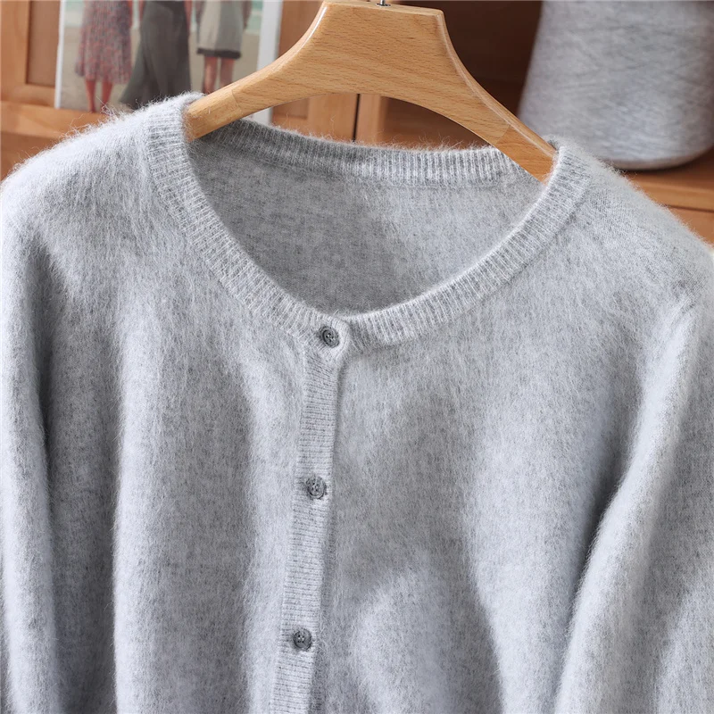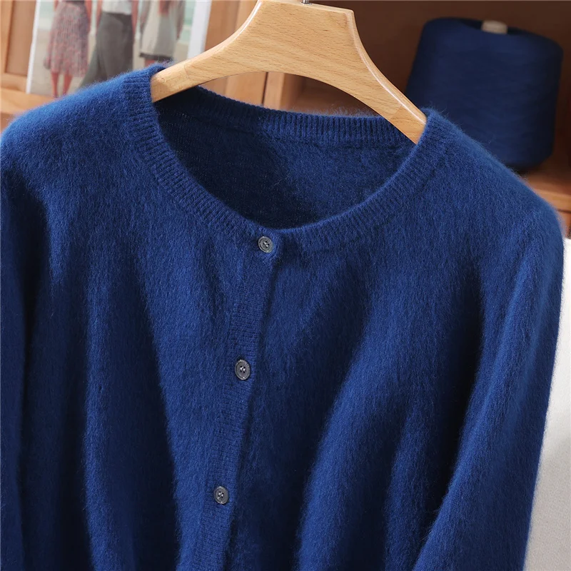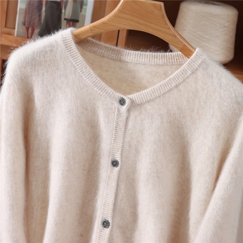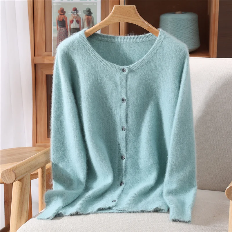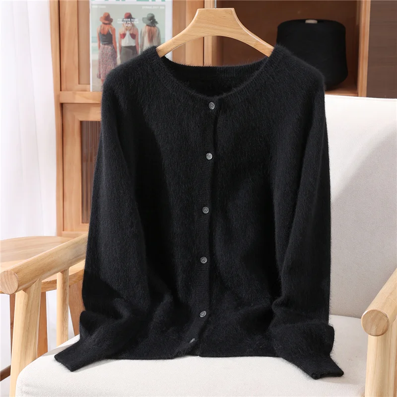 New Women 100% Mink Cashmere Sweater O-Neck Buttons Cardigan Autumn Winter Soft Warm Cable Kint Sweater Casual Long Sleeve Tops