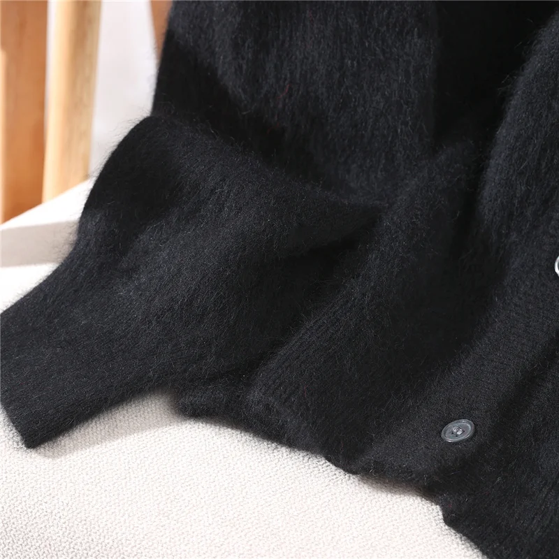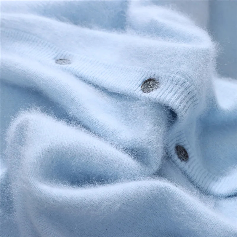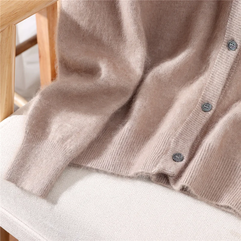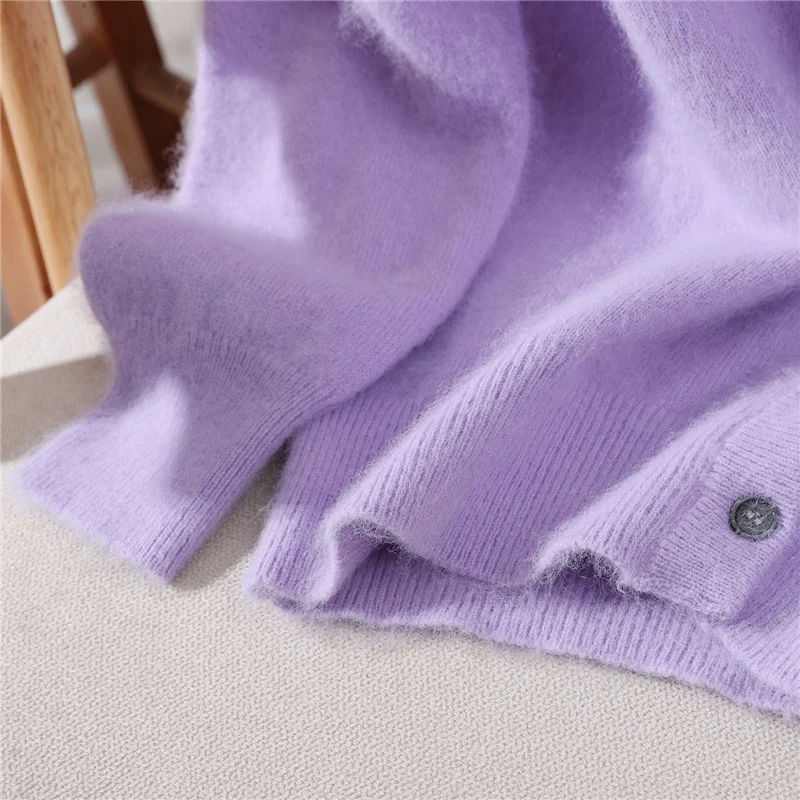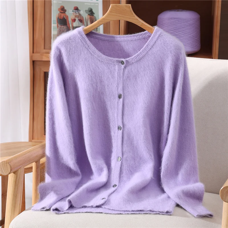 New Women 100% Mink Cashmere Sweater O-Neck Buttons Cardigan Autumn Winter Soft Warm Cable Kint Sweater Casual Long  Sleeve Tops