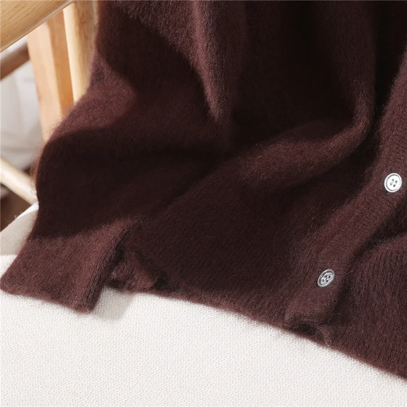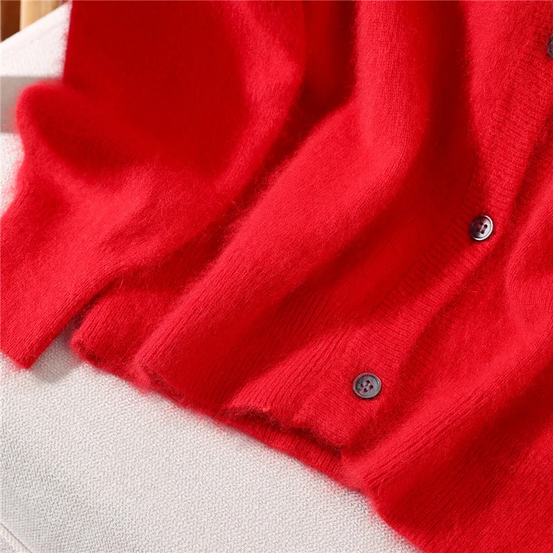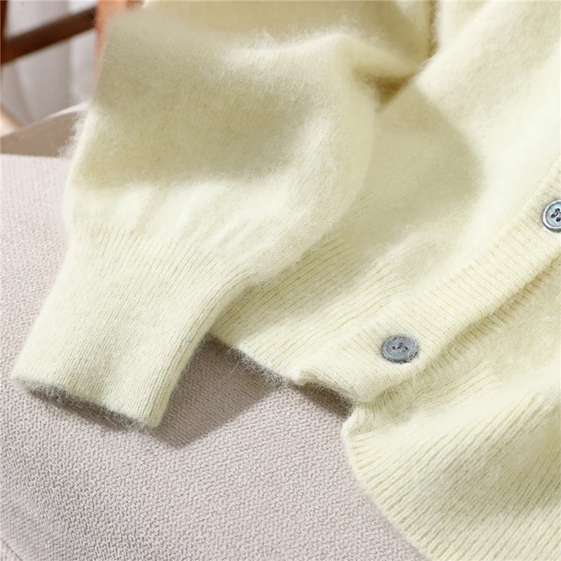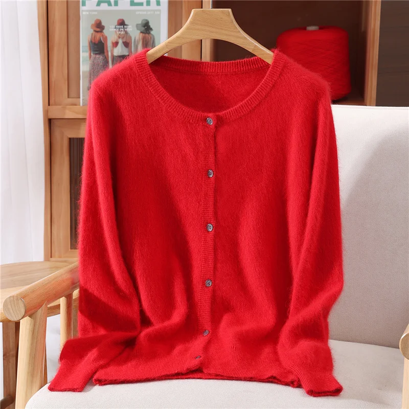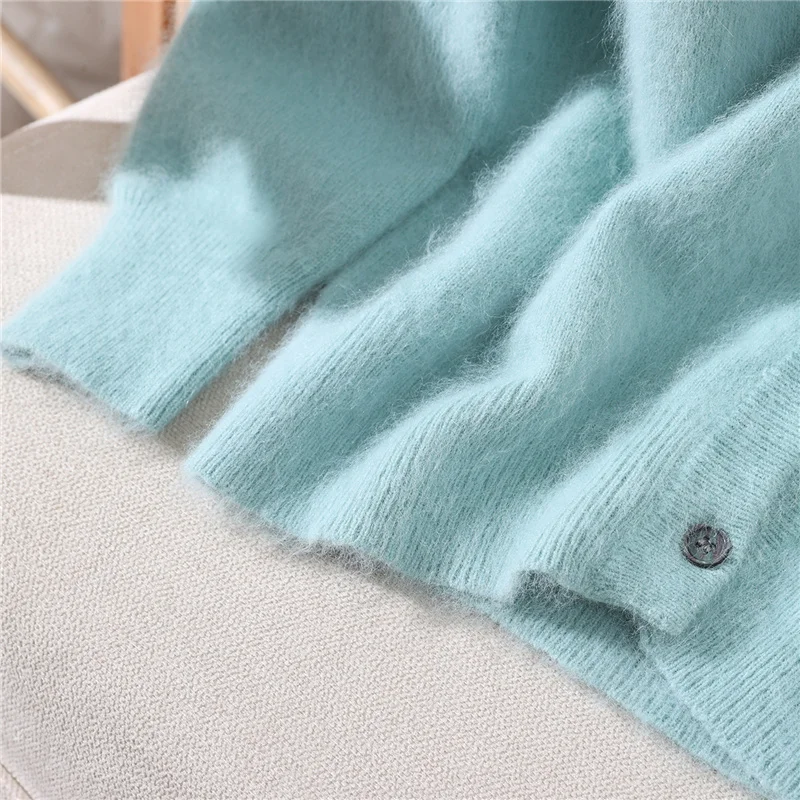 New Women 100% Mink Cashmere Sweater O-Neck Buttons Cardigan Autumn Winter Soft Warm Cable Kint Sweater Casual Long  Sleeve Tops