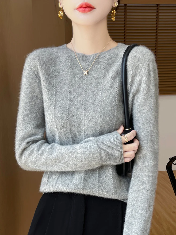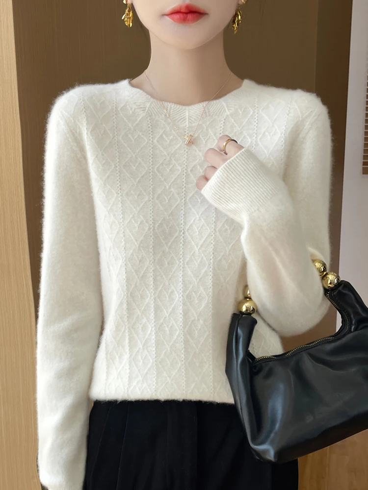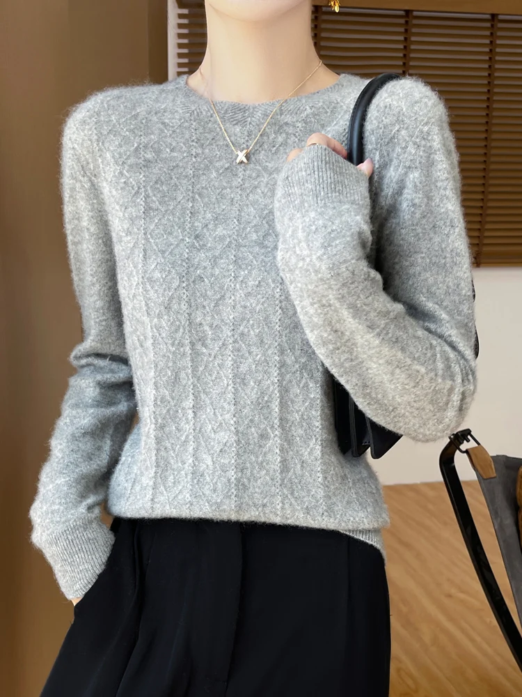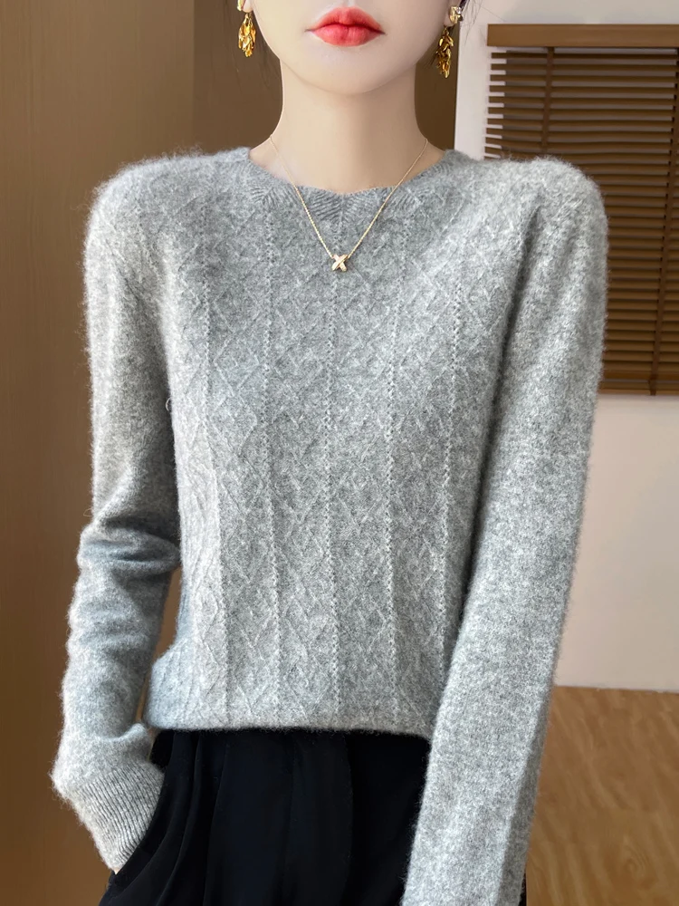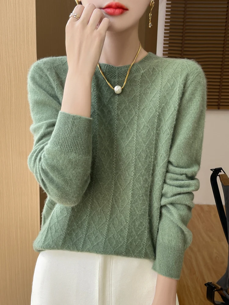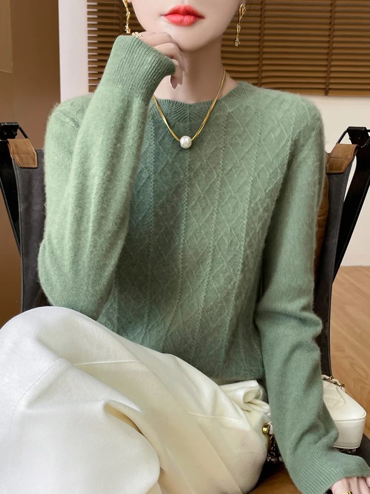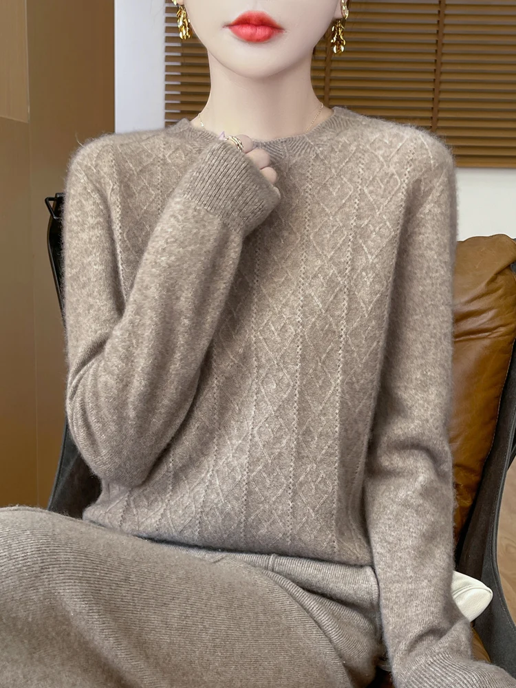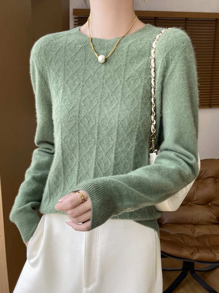Addonee Women’s 100% Merino Wool O-Neck Sweater – Soft Cashmere Feel Knit Pullover, Long Sleeve, Lightweight Warm Autumn Winter Regular Fit Solid Classic Vintage