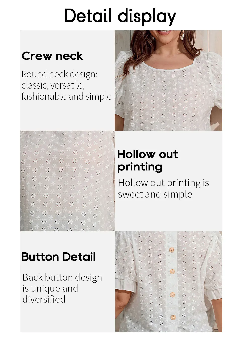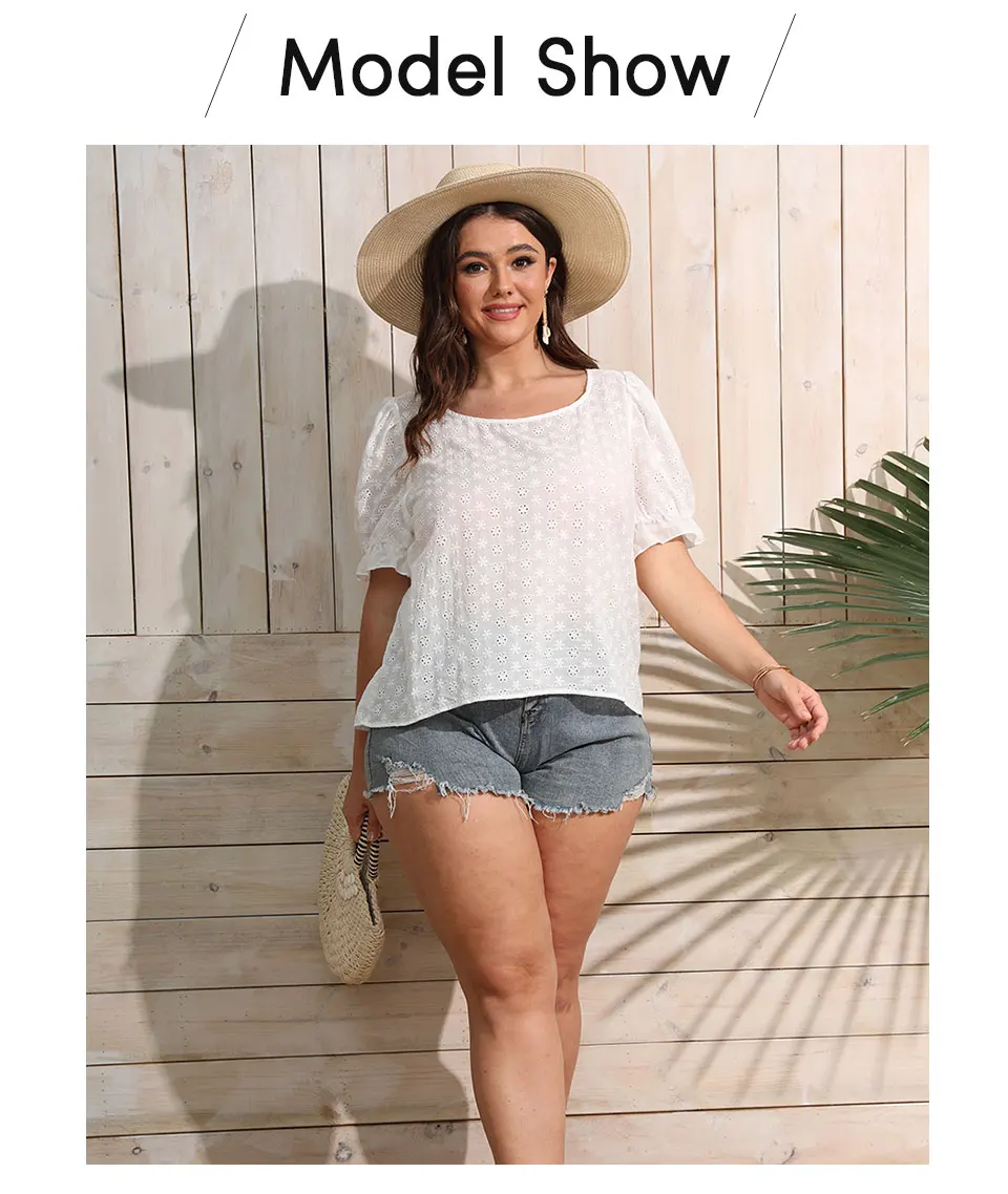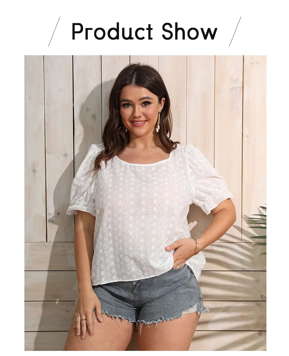 Finjani Plus Size Button Detail Schiffy Blouse Women Short Sleeve Hollow Oversized T-shirt Summer Casual Temperament Top BENNYS