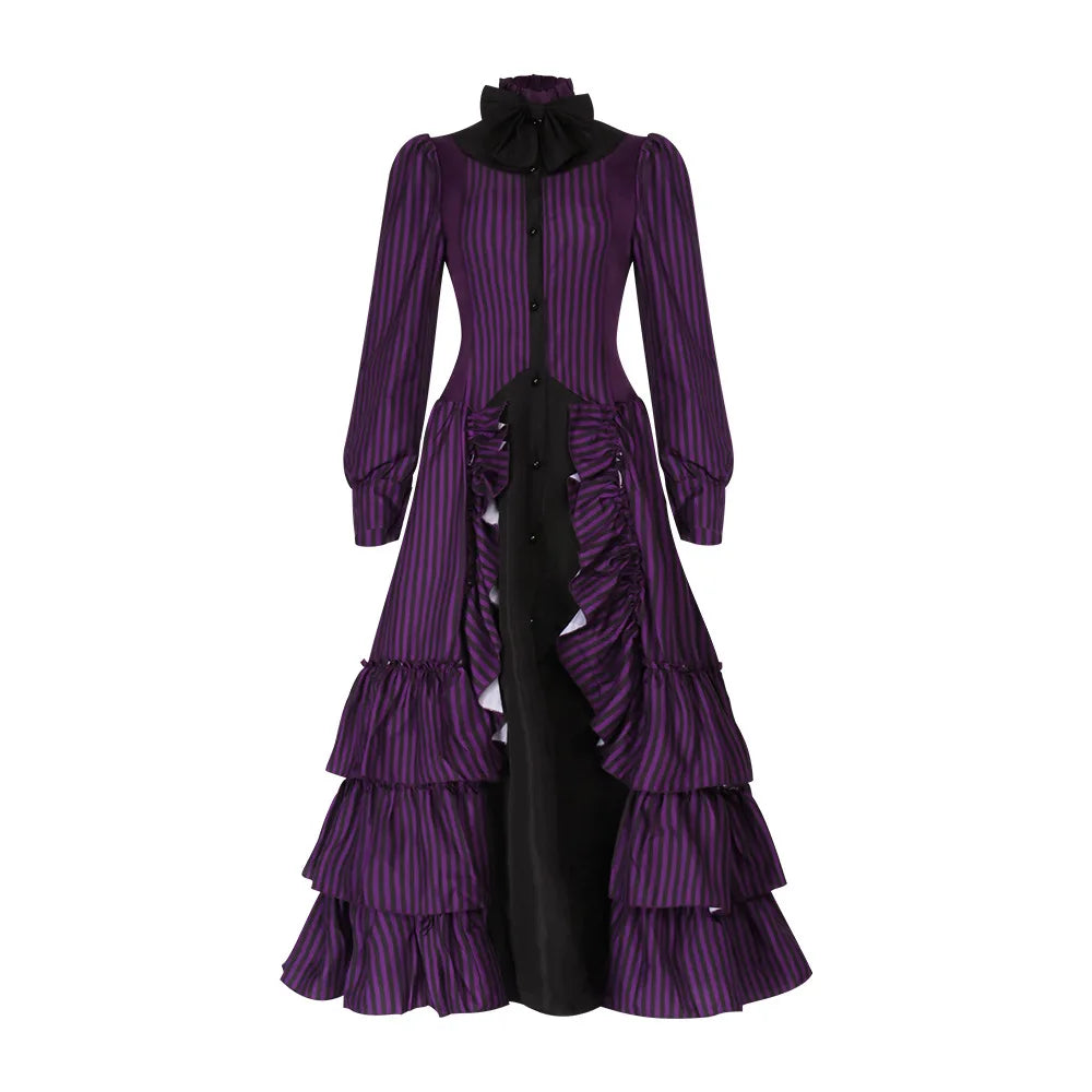 Embrace gothic elegance with this striking medieval Victorian vampire costume designed for women. Crafted from high-quality polyester, this ensemble delivers authentic period styling inspired by classic film and television aesthetics. Available in a comprehensive range of sizes from XS to XXXL, it accommodates diverse body types with precision. The rich purple hue evokes timeless sophistication while the intricate tatting weave adds refined textural detail. Perfect for Halloween celebrations, themed events, or costume occasions, this versatile piece combines historical silhouette with contemporary comfort. Transform your appearance with a costume that balances dramatic flair and wearable sophistication.