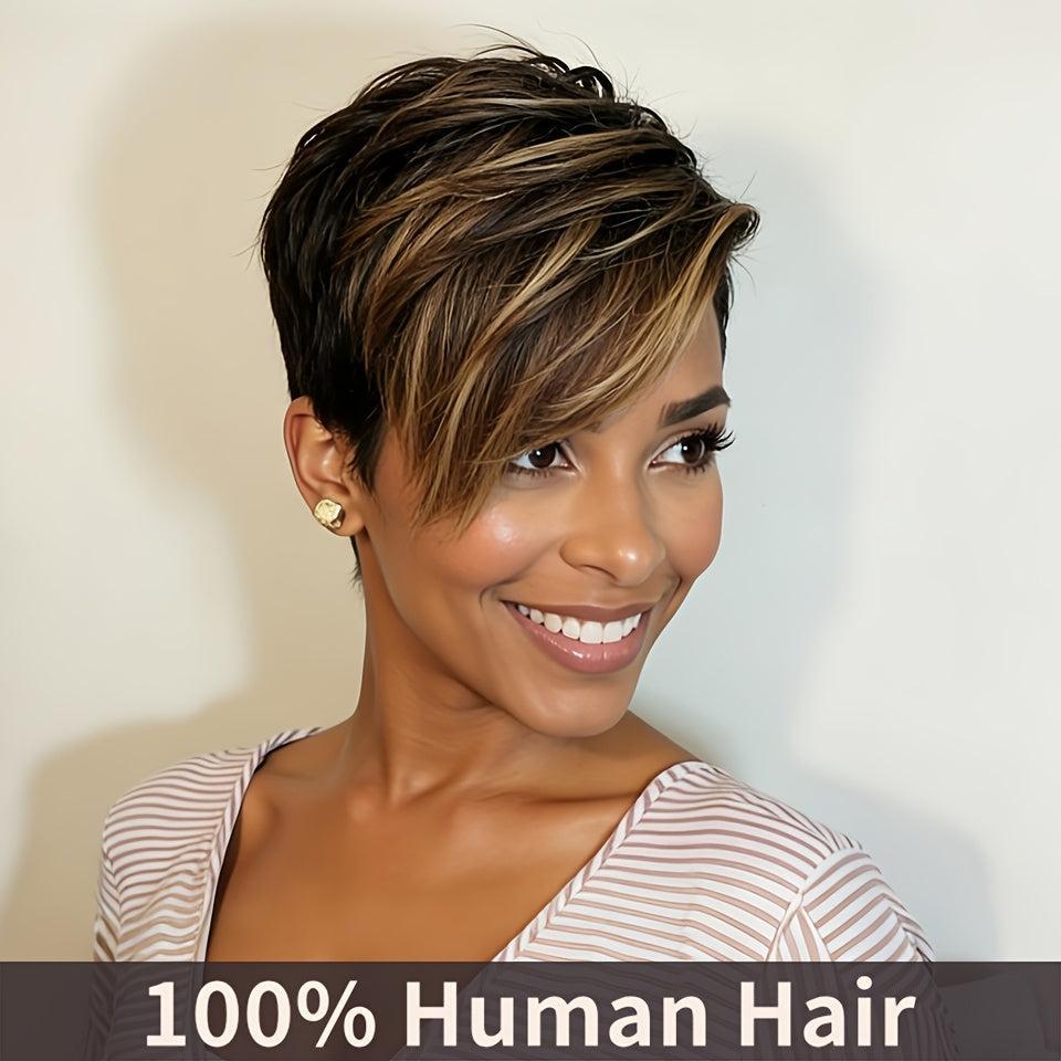 Short Ombre Pixie Cut Human Hair Wig for Women