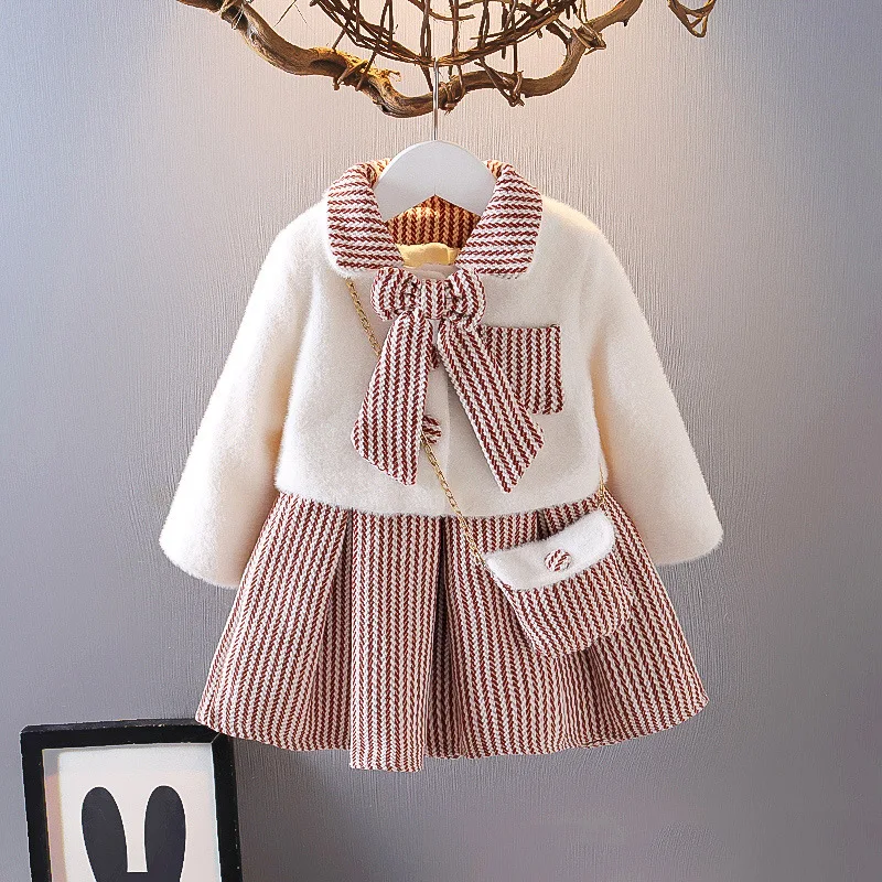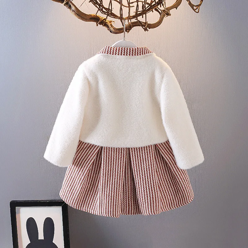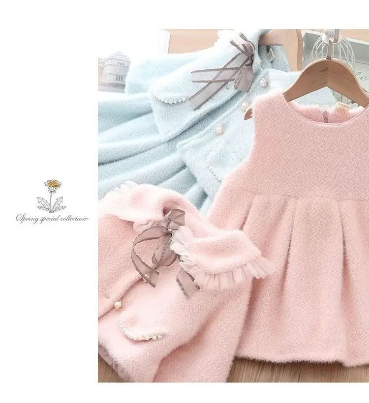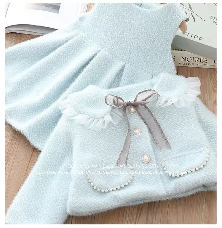 Girls Clothes Sets Woolen Velvet Coats Dresses