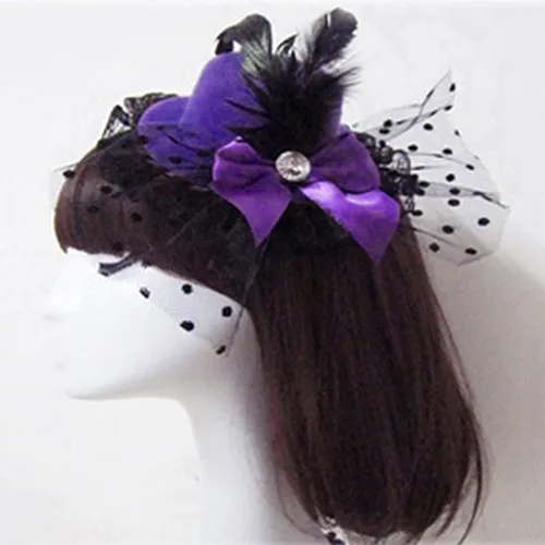 Lady Mini Top Hat Cap Bowknot Décor Lace Fascinator Hair Clip Costume Accessory