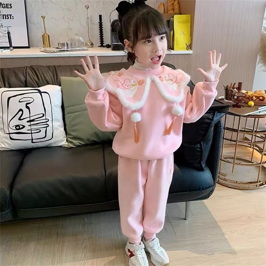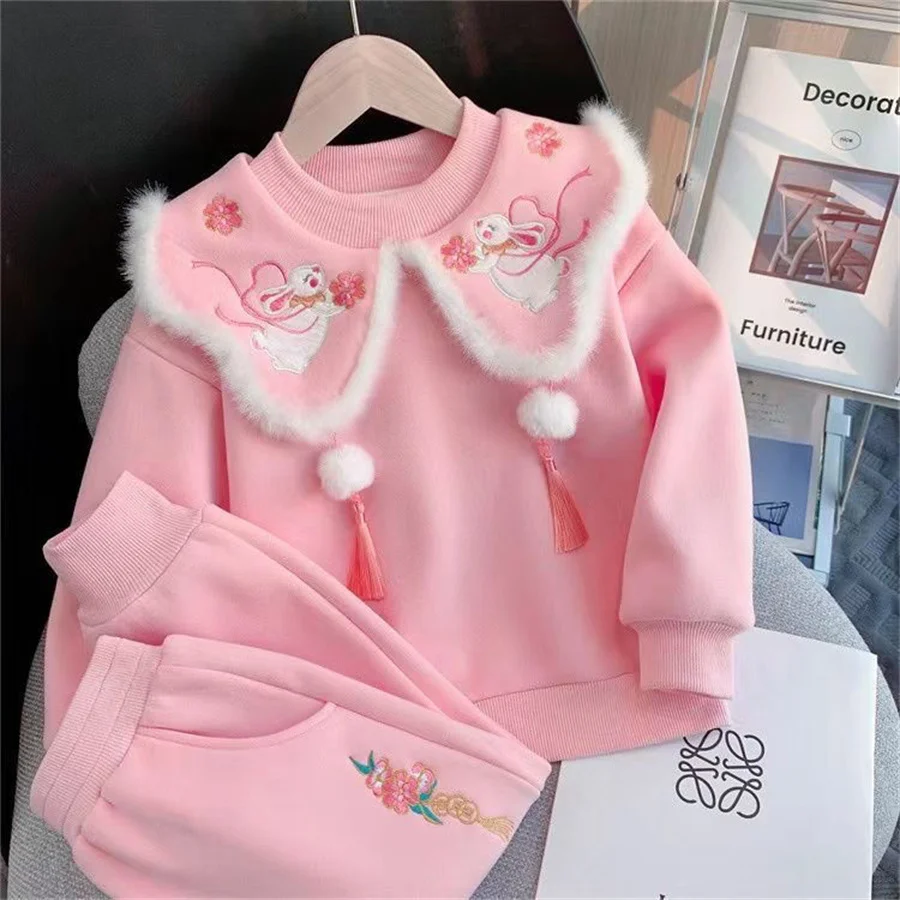 fall winter kids 2 piece sets: cute embroidery girls clothes for kids girl