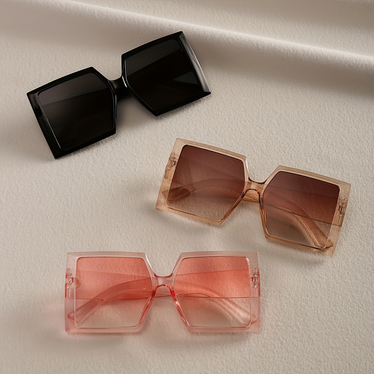 3pcs Three-in-one Women's Glasses Set Fashionable Large Frame Face-Revealing Small Flat Top Glasses