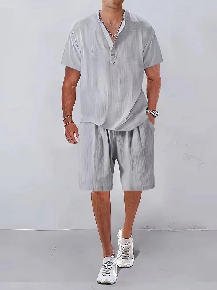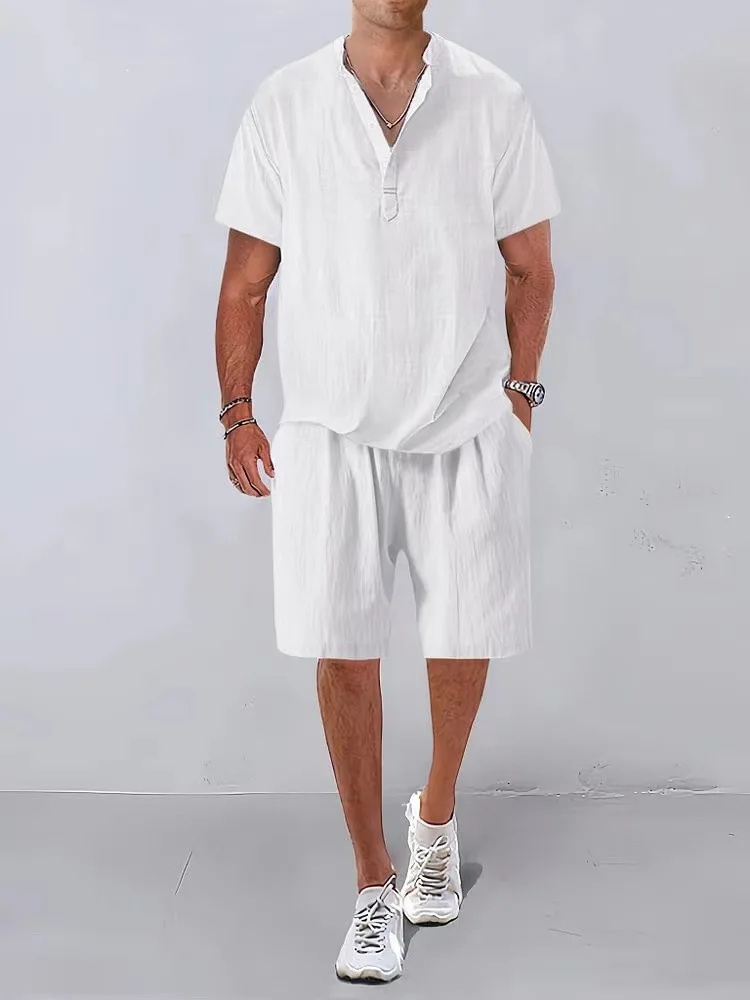 Introducing our Summer Linen Outfits, a perfect blend of style and comfort designed for the modern man. This versatile two-piece set includes a Short Sleeve Polo Shirt and matching Shorts, making it an ideal choice for any casual occasion.