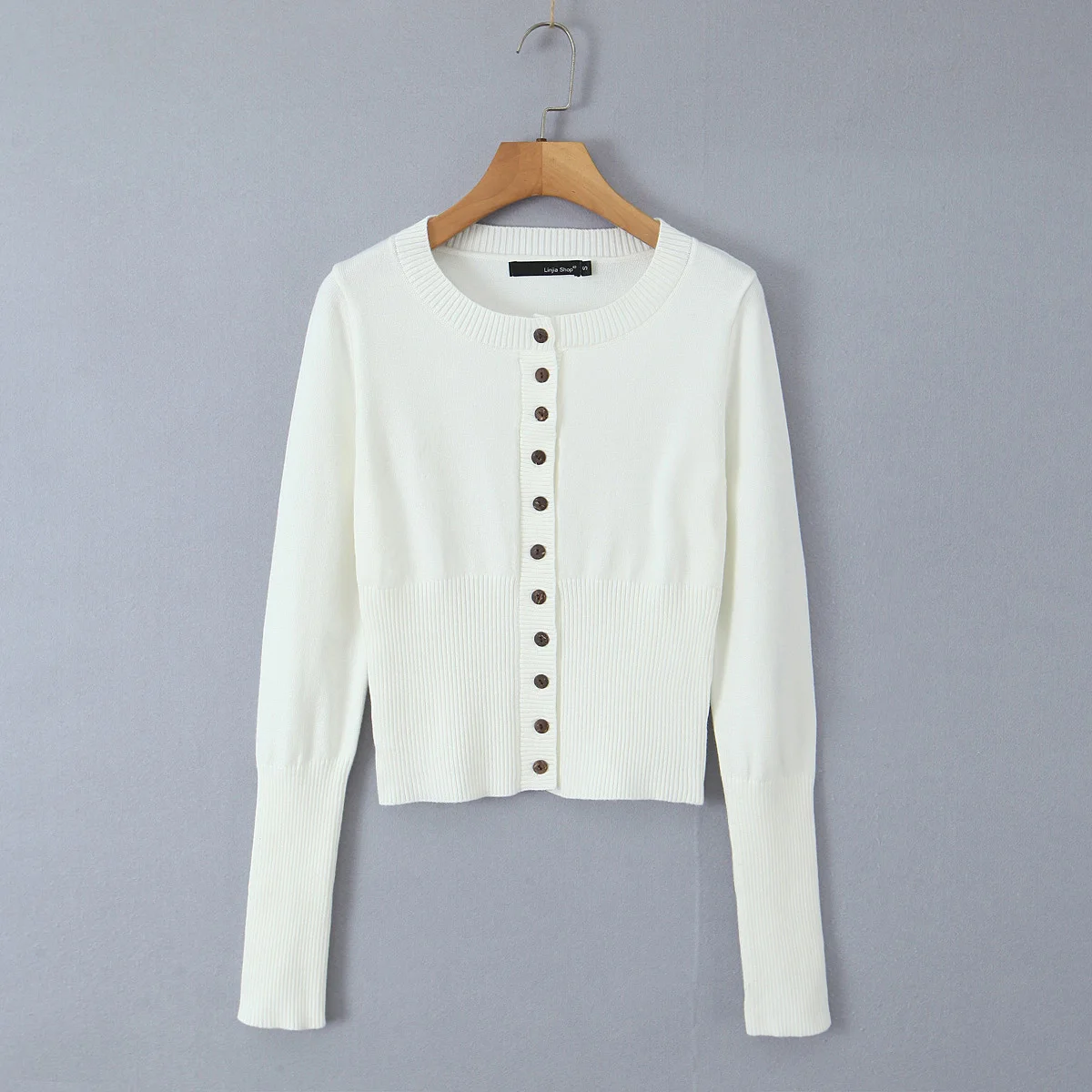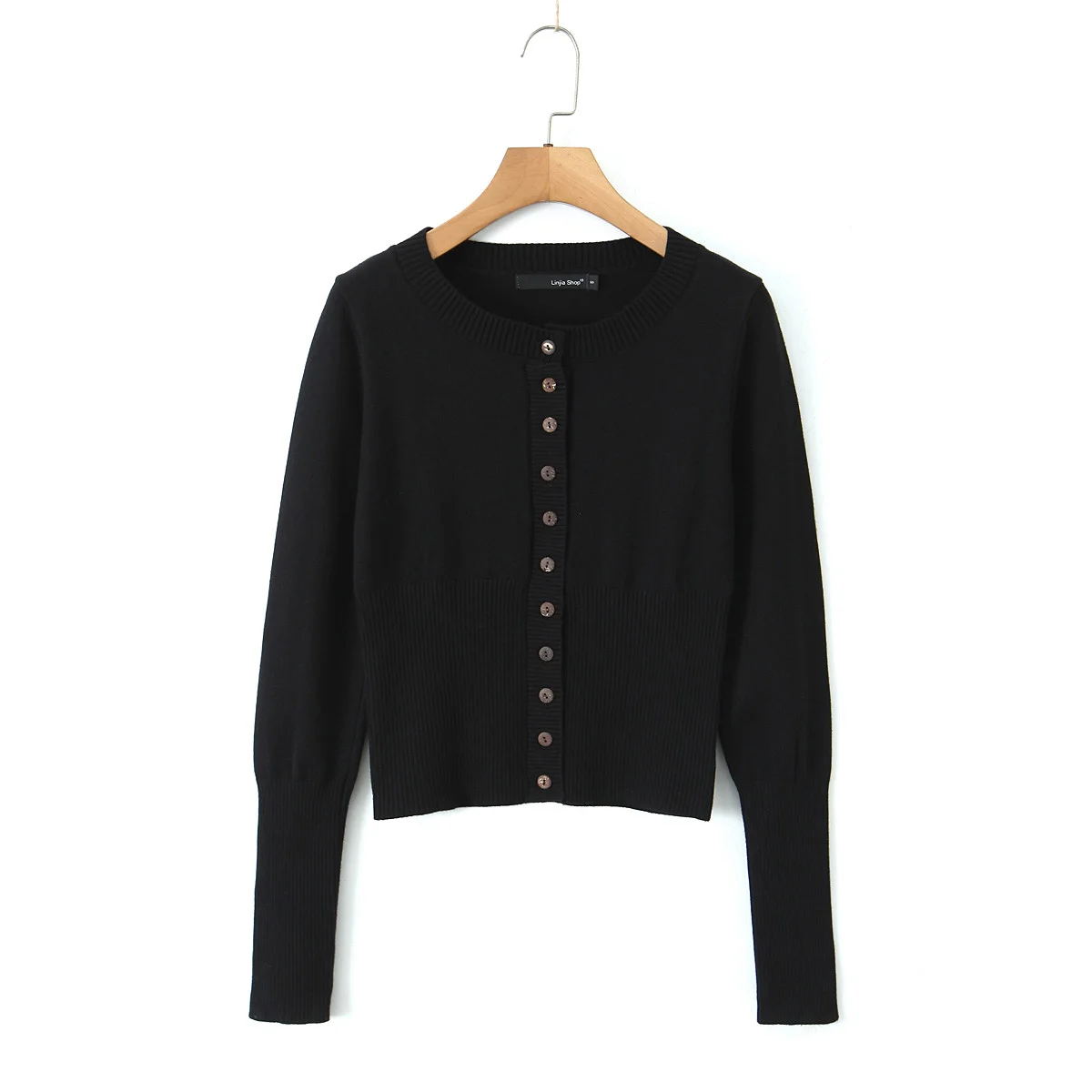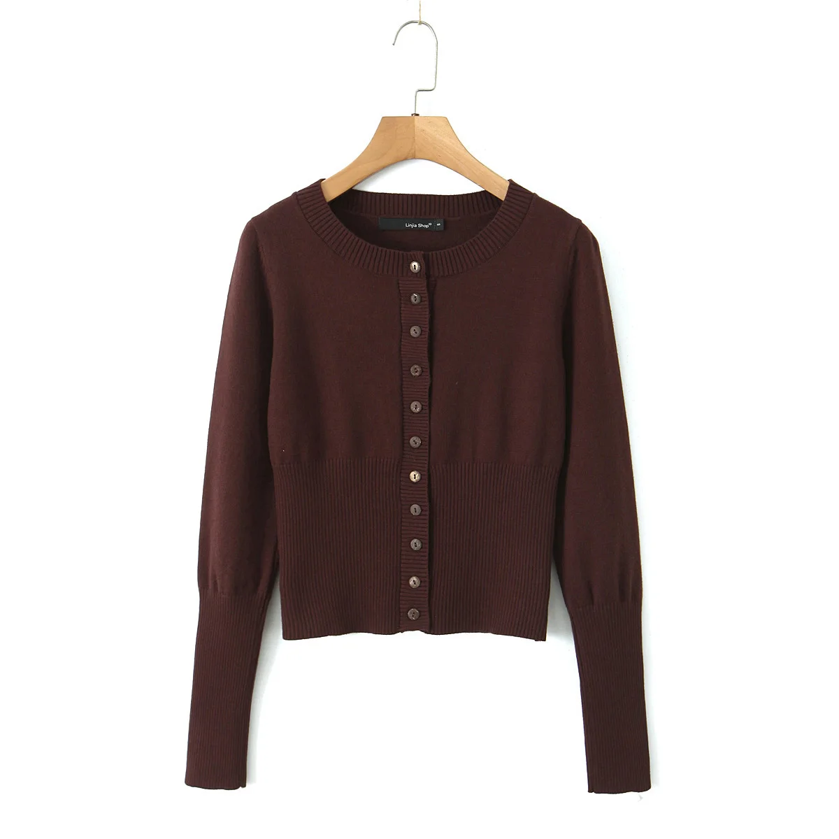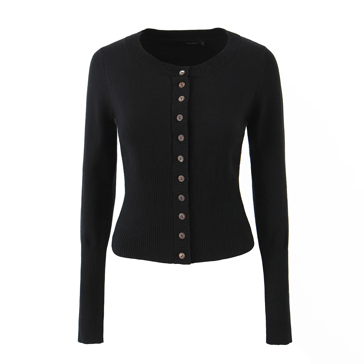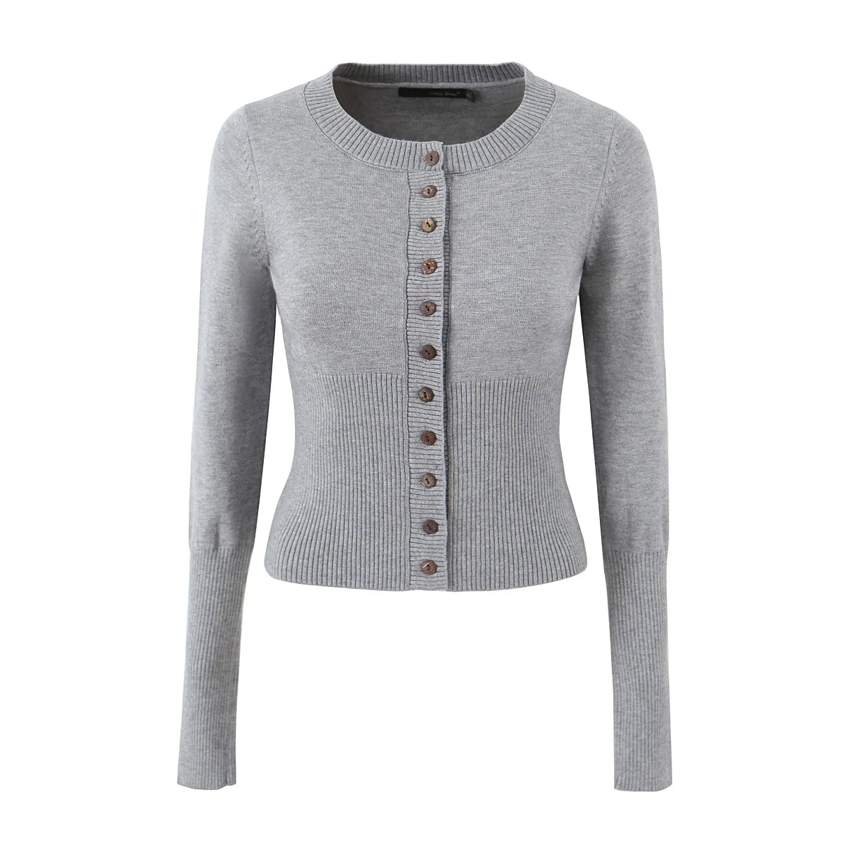 This cropped sweater is a vintage fashion must-have for women. Made with high-quality materials, including 95% acrylic, it features a medium stretch and a classic solid pattern. The long, full sleeves and o-neck collar make it perfect for autumn and winter, while the button-up closure adds an elegant touch. With a length of 4-16 inches, it offers a regular fit and a preppy style, making it a versatile addition to any wardrobe.