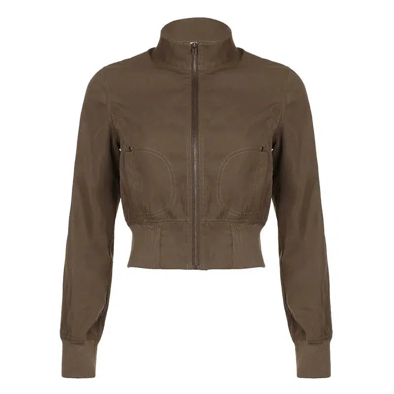 Layer up with style this season with our Fall and Winter Crop Jackets for Women. Featuring a turtleneck design and zip-up closure, our brown 90s vintage bomber jackets are the perfect addition to your wardrobe. Made with a blend of COTTON and POLYESTER materials, these jackets are both durable and comfortable. With a sleek slim fit, this jacket is ideal for adult women of all ages. Stay warm and on-trend this autumn and winter with our solid colored jackets, complete with convenient pockets and a full sleeve length. Don't miss out on this must-have outerwear piece.