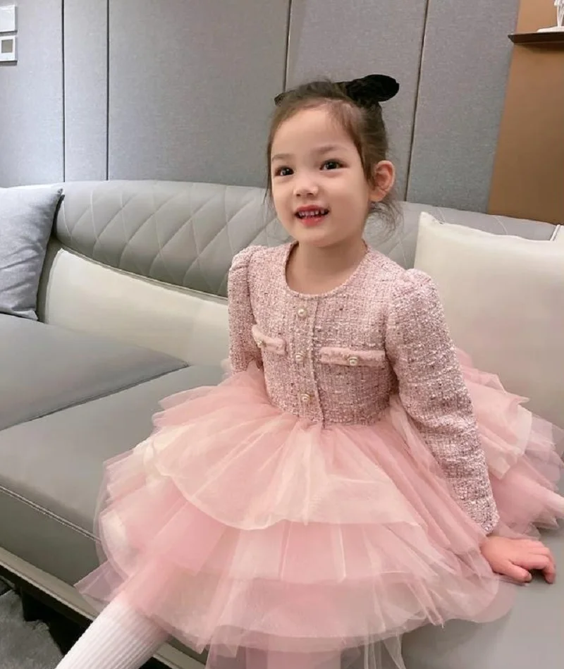 style 1: baby girl elegant patchwork formal warm dress